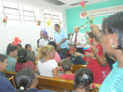 O pastor Geraldo Vilhena explicou para as famílias sobre a Rosa de Sarom que representa o Senhor Jesus e em seguida deu para cada mãe,e explicou que esta rosa iria absorver todo mal de sua casa e depois a levassem para a IURD próximo de sua residencia.